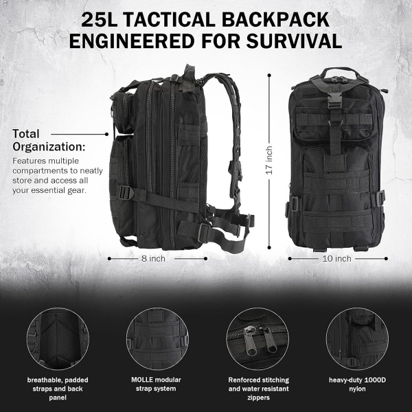 सामरिक गियर अटैचमेंट के लिए MOLLE अनुकूलता के साथ कॉम्पैक्ट, हल्की संरचना