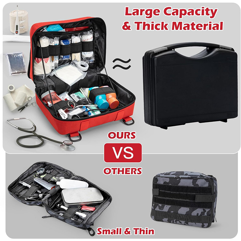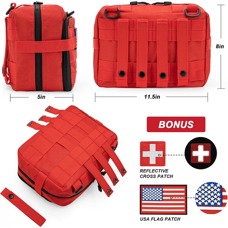 केबन एन्हांस्ड ट्रॉमा सर्वाइवल एड किट में मेडिकल प्राथमिक चिकित्सा आपूर्ति और बाहरी यात्रा, शिविर और अन्य परिदृश्यों के लिए व्यावहारिक उपकरण शामिल हैं, जो चिकित्सा और आउटडोर मज़े की जरूरतों को पूरा करते हैं। आपातकालीन उत्तरजीविता बैग में एक बकसुआ होता है जिसे बेल्ट या बैकपैक पर लटका दिया जा सकता है, जिससे इसे ले जाना आसान हो जाता है। आसान पहुंच के लिए आंतरिक डिब्बे।