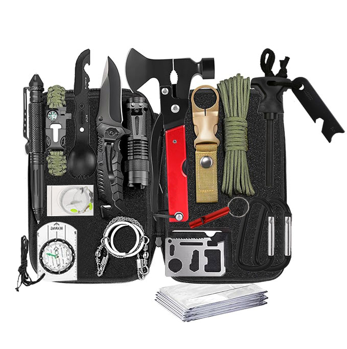 आउटडोर उत्तरजीविता किट लोगों को जंगल में आपात स्थिति में जीवित रहने और खुद को बचाने में मदद कर सकती हैं। वे आम तौर पर लंबी पैदल यात्रा, शिविर, अन्वेषण और चरम खेलों जैसी बाहरी गतिविधियों के लिए आवश्यक उपकरणों में से एक हैं। इन गतिविधियों की अप्रत्याशितता से असुरक्षितता का खतरा बढ़ जाएगा। यदि आप किसी आपातकालीन स्थिति का सामना करते हैं, जैसे कि आकस्मिक चोट, खो जाना, या खराब मौसम, तो एक आउटडोर सर्वाइवल किट स्थिति को धीमा करते हुए और अनावश्यक चोटों और नुकसान को कम करते हुए आपके शरीर को आवश्यक ऊर्जा प्रदान कर सकती है।