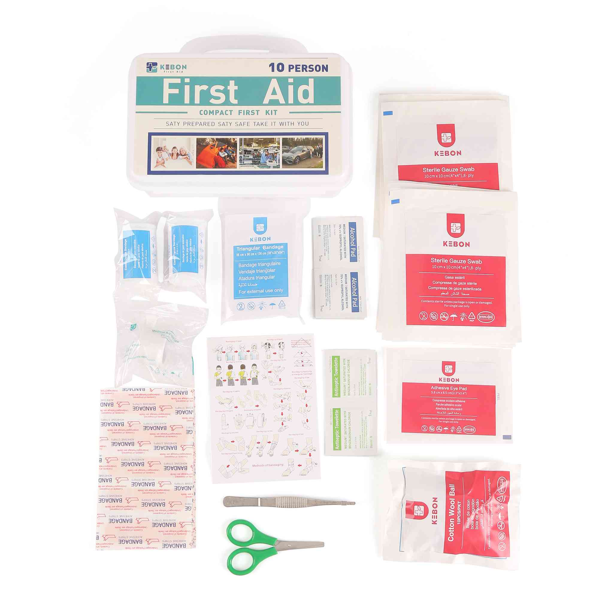 | प्रथम सहायता बॉक्स | 21 सेमी x 13 सेमी x 5 सेमी ( 8.3" x 5.1" x 2") | 1 |